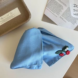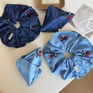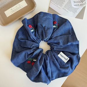韩系时尚樱桃刺绣牛仔纯色大肠发圈发饰女布艺发绳慵懒风头绳发绳
