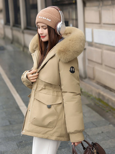 收腰显瘦派克服棉衣女2025年冬季跨境加厚加绒棉服毛领棉袄外套贸