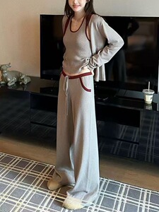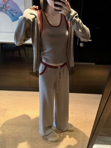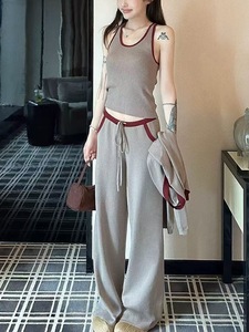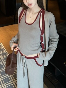 宁司 撞色针织修身背心女早秋韩系外搭开衫上衣百搭休闲裤套装