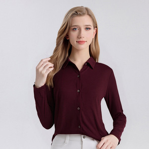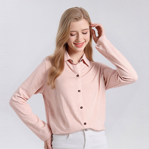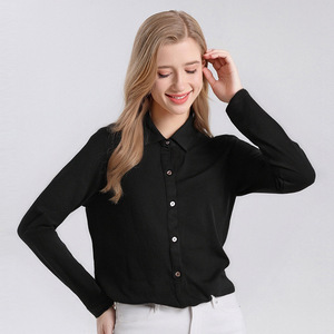 华业秋冬100%超细澳洲羊毛长袖衬衫女士翻领薄款羊毛针织大码衬衣