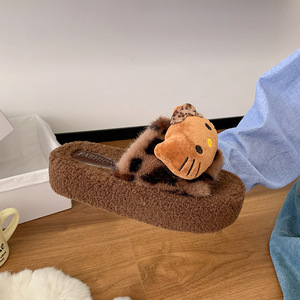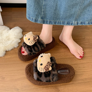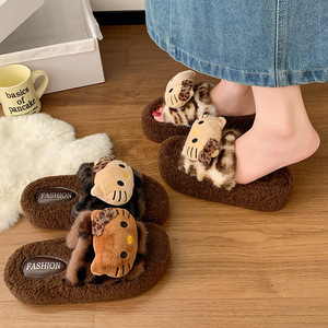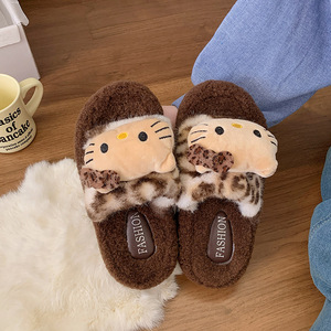 哈喽kt豹纹棉拖鞋秋冬季可爱毛毛拖鞋毛绒防滑臭家居室内2025新款