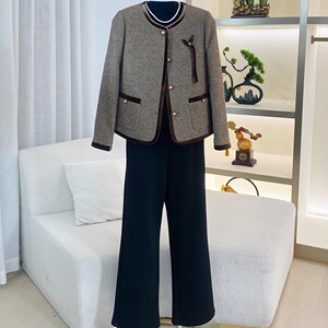 妈妈装2025秋装新款小香风外套装中年女时尚上衣洋气圆领中年女装