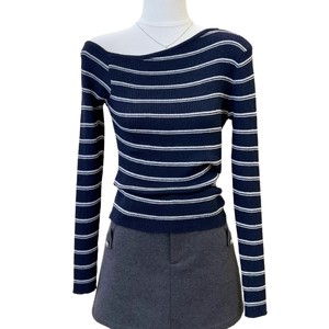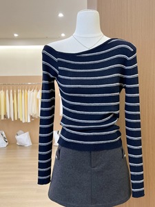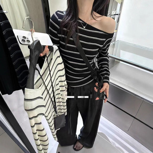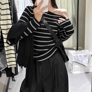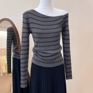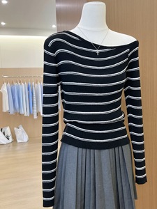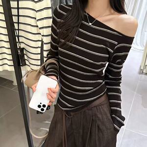 韩系一字肩长袖针织衫女2025秋冬季新款打底衫设计感显瘦内搭上衣
