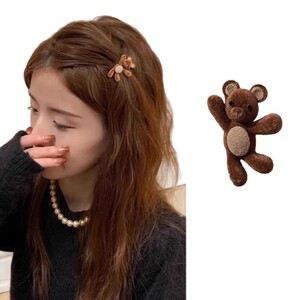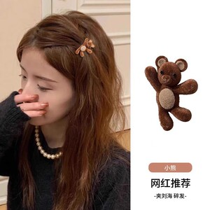 秋冬可爱招手小熊边夹精致小巧植绒发夹儿童刘海侧边碎发鸭嘴夹