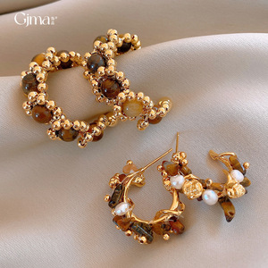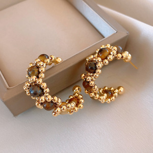 银针复古美拉德风几何虎眼石花朵耳环轻奢高级感耳钉时尚个性耳饰