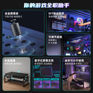 台式电脑桌卧室家用带洞洞板书桌书架落地置物架单人电竞桌椅组合
