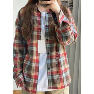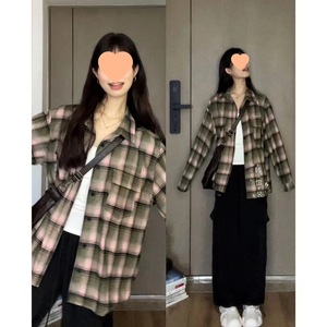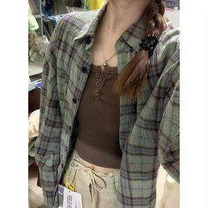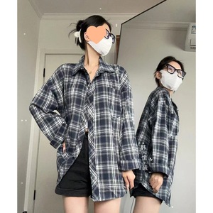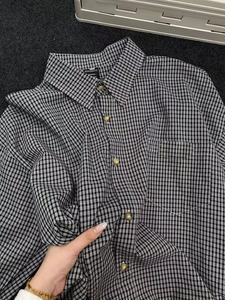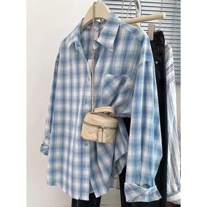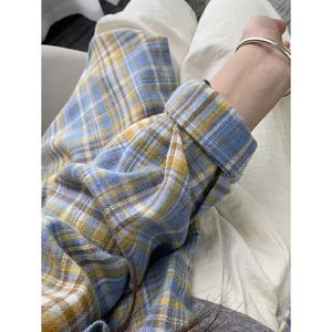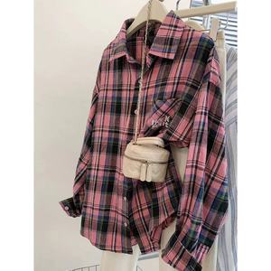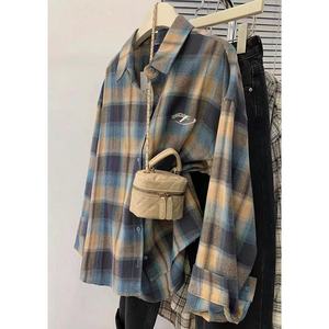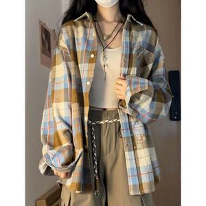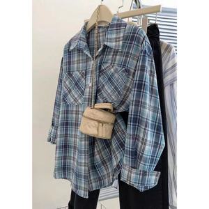 轻奢复古格子衬衫女上衣春秋款外套打底内搭叠穿小衫格纹衬衣外穿