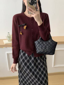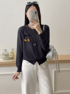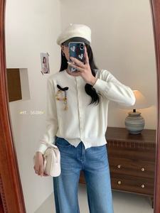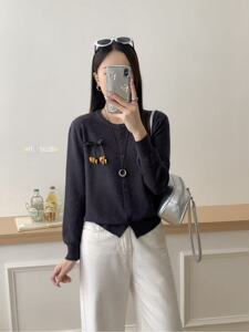 2025早秋新款女装独特别致圆领针织开衫时尚气质百搭的减龄款毛衣