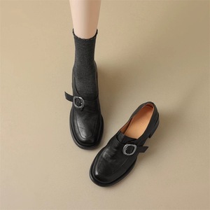 真皮高跟乐福鞋女2025新款圆头百搭粗跟单鞋英伦风黑色牛津小皮鞋
