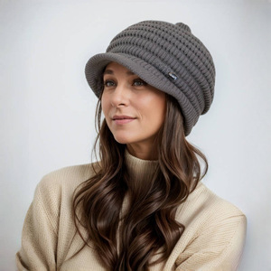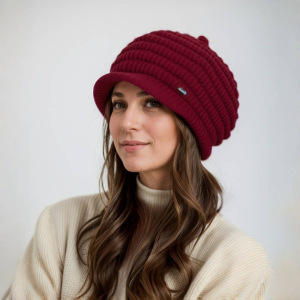 跨境新款加绒保暖鸭舌帽子女时尚百搭贝雷帽防寒护耳毛线针织帽冬