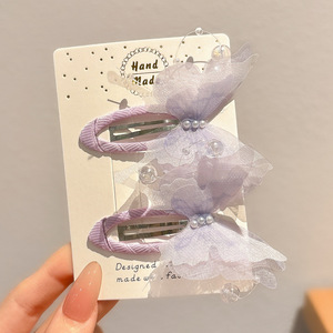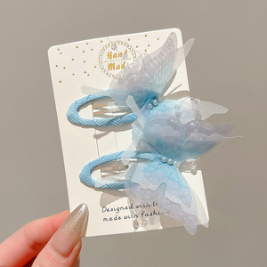 1#蓝色蝴蝶发夹一对装-7.5cm