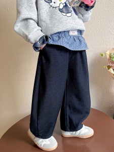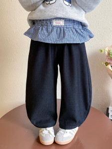 女童2025秋季新款裤子韩系屁帘格子拼接时髦直筒裤宝宝洋气休闲裤