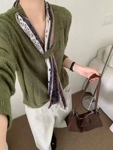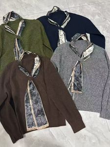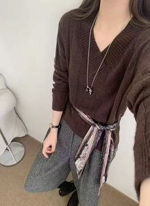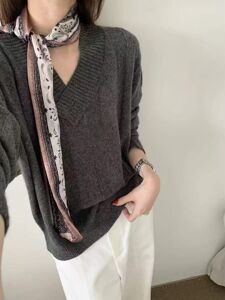 气质欧货丝羊绒针织衫女v领长袖配丝巾秋季高品质软糯亲肤毛衣女