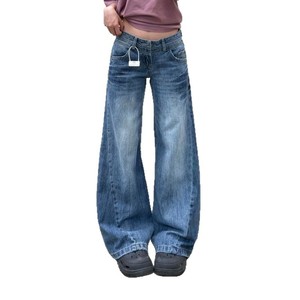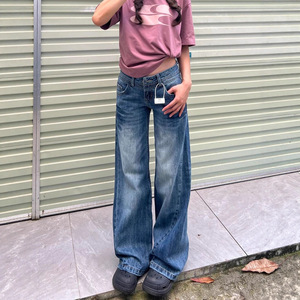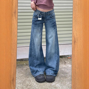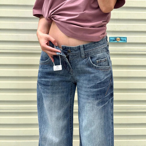 【韩牛】美式复古水洗2025年潮流新款宽松窄版低腰微喇牛仔裤女