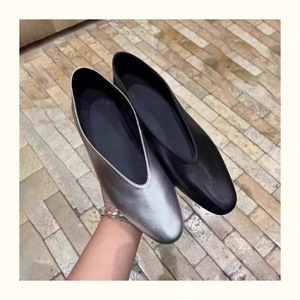 牛皮版~法式圆头真皮V口平底单鞋女2025年新款一脚蹬舒适玛丽珍鞋