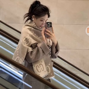 欧美大牌新款GG 新款围巾米色高品质羊毛围巾女百搭双面字母披肩
