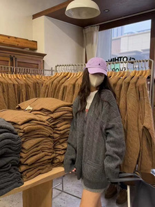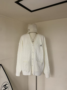 RL小马拉夫小麻花V领针织开衫百搭休闲时尚女外套长款两侧大口袋