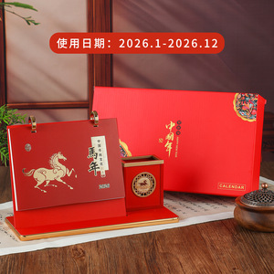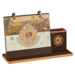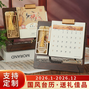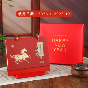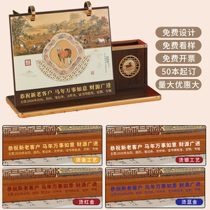 2026马年精品文创木艺创意月历企业商务高端桌面台历办公摆件日历