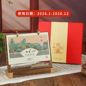 黑桃木纹(台历+笔筒+金边)-千里江山