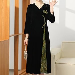 一件代发2025秋季新款时尚洋气优雅大气修身改良中式中长款连衣裙