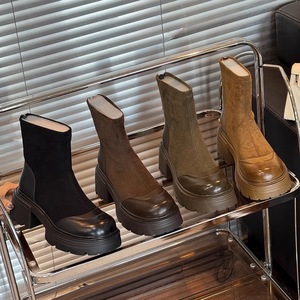 7cm增高短筒短靴女粗跟高跟2025春秋季新款百搭美拉德真皮马丁靴