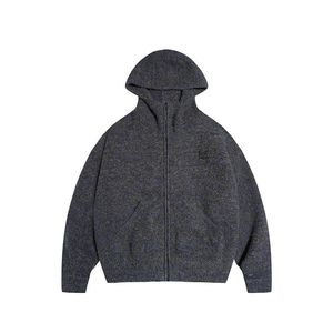 灰色复古连帽毛衣外套女春秋小个子慵懒风高级感加厚宽松针织开衫