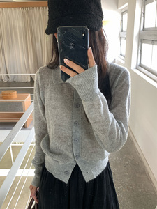 黄峥韩版POLO领长袖针织衫女2025秋季休闲百搭简约开衫上衣530085