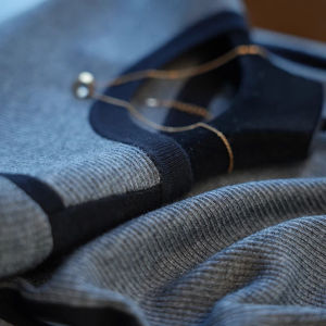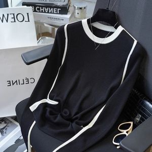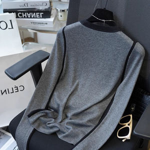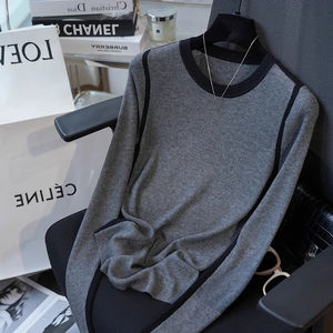 高级感灰色针织衫2025秋冬设计感撞色拼接毛衣时尚简约圆领打底衫