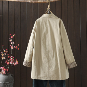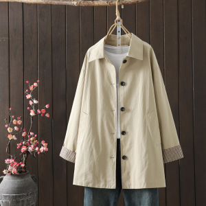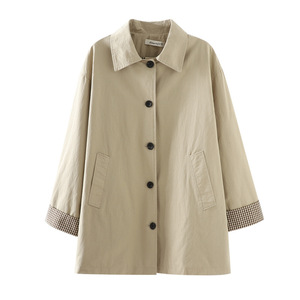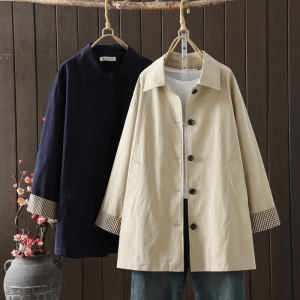 2025秋冬新款 纯色棉布纽扣翻领中长款风衣开衫外套批发