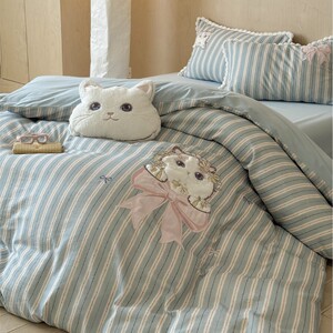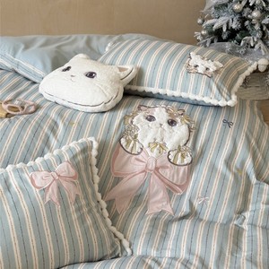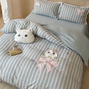 小清新卡通猫咪刺绣亲肤床品四季款纯棉长绒棉四件套家纺糖豆