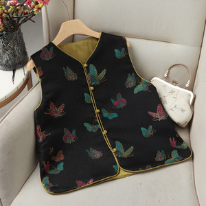 批发国风两面穿新中式马夹2025新款时尚圆领唐装无袖上衣坎肩背心