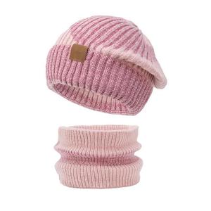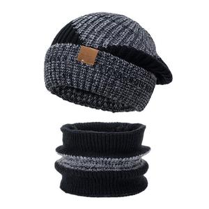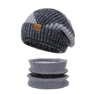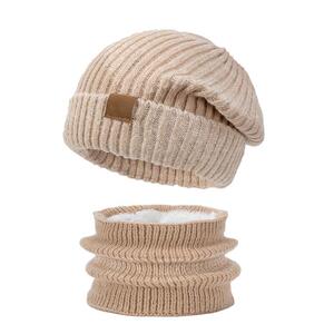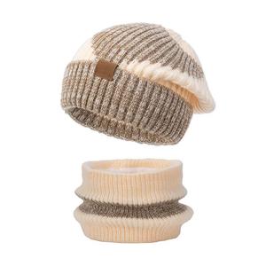 冬季新款跨境双色帽子女加厚保暖护耳毛线帽加绒围脖两件套针织帽