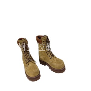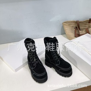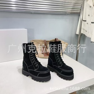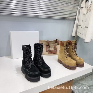 高定2025秋冬小众麂皮圆头英伦复古厚底增高绑带马丁靴骑士靴短靴