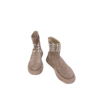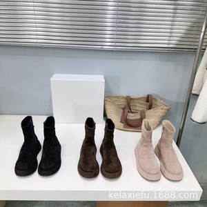小众2025秋冬麂皮圆头复古厚底侧拉链百搭时尚短靴马丁靴单靴裸靴