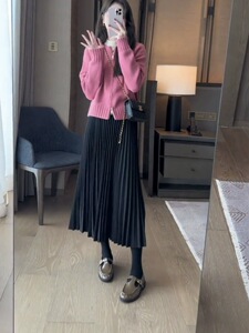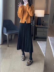 高级垂坠感加厚毛呢半身裙百褶2025秋冬高腰显瘦气质百搭A字长裙