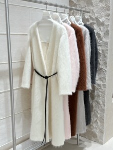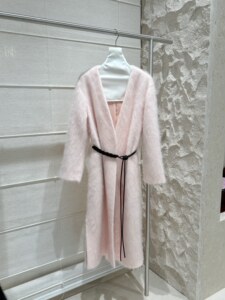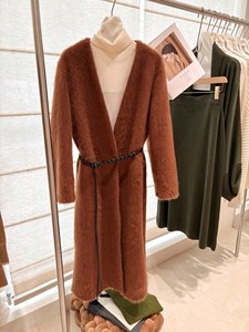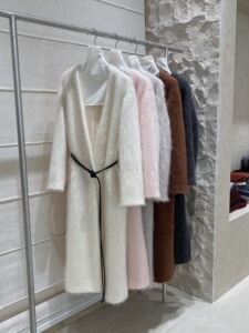 厂家直供羊绒拉毛长款XK25-9025开衫浴袍式大衣外套皮草羊绒衫女