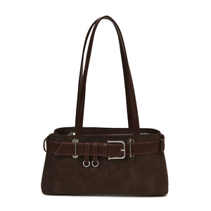 跨境复古磨砂手提麂皮绒腋下包包女2025秋冬新款百搭大容量单肩包