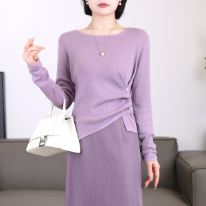 不规则褶皱羊毛针织衫秋冬2025新款气质修身上衣百搭收腰长袖1262