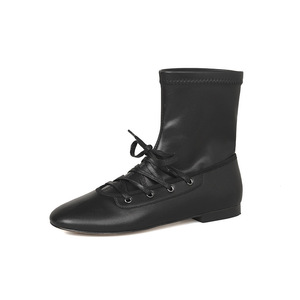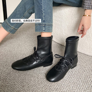 真皮切尔西靴2025秋冬圆头绑带弹力瘦瘦靴女平底舒适短筒百搭女靴