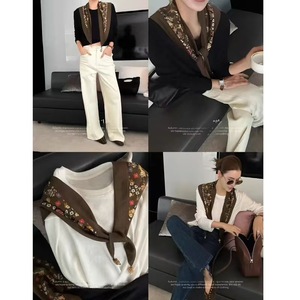 2025早秋新款时尚披肩丝巾女吊坠印花护颈斜纹三角巾领巾工厂批发
