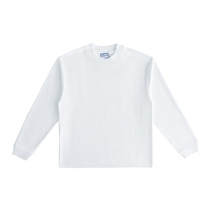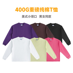 400g重磅全棉纯色长袖T恤男宽松美式小领口秋冬打底衫厚男女同款