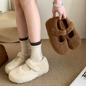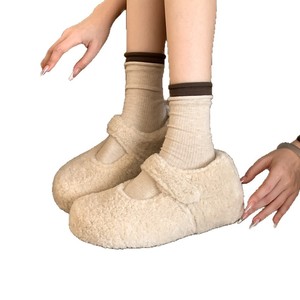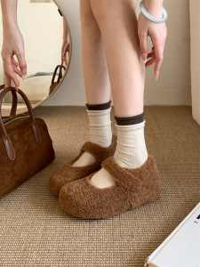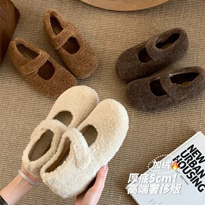 软糯小土豆~内增高5CM毛毛鞋加绒玛丽珍鞋勃肯鞋女秋冬季厚底棉鞋