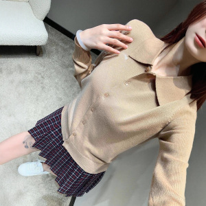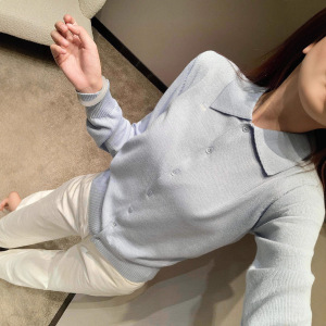 2025早秋新款南油miu文艺风气质减龄字母刺绣翻领长袖针织开衫女