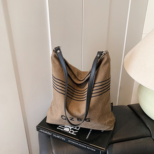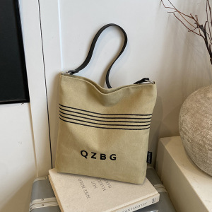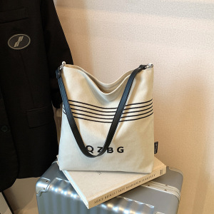 休闲百搭帆布包包女2025新款时尚通勤单肩包大学生外出托特水桶包