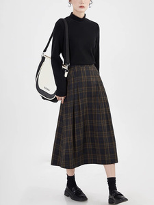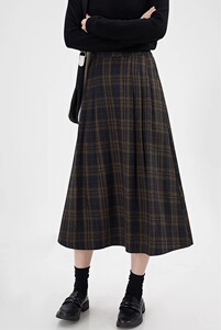 GUIER格纹半身裙秋冬女2025新款法式复古高腰显瘦毛呢a字裙