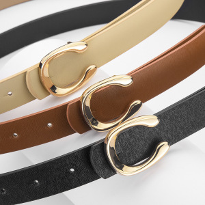 新款女士平滑扣皮带字母C韩版连衣裙牛仔裤PU女士细腰带厂家批发