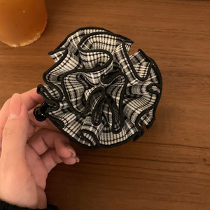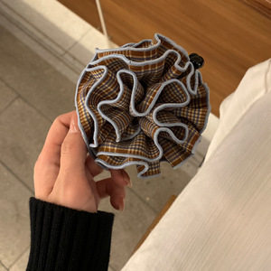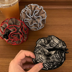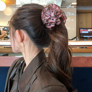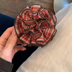 经典红格纹花球撞色香蕉夹女高级感扎发高马尾鲨鱼夹竖夹头饰发饰