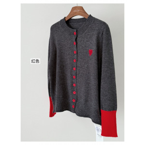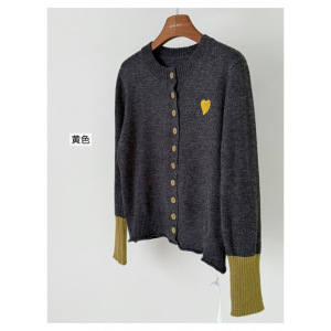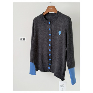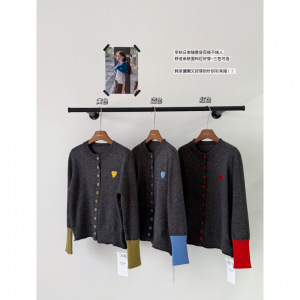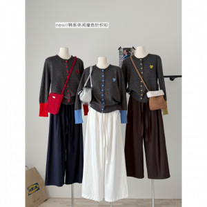 温柔少女感 撞色圆领短款针织衫女春季小香风韩系开衫毛衣