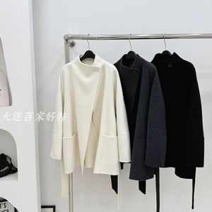 慵懒气质立领大翻领双面羊毛大衣女短款秋冬季25年新款腰带外套韩