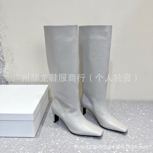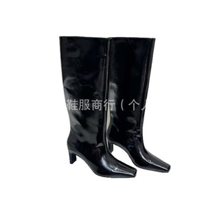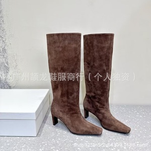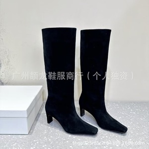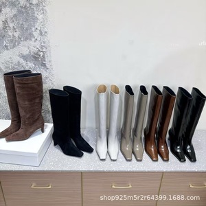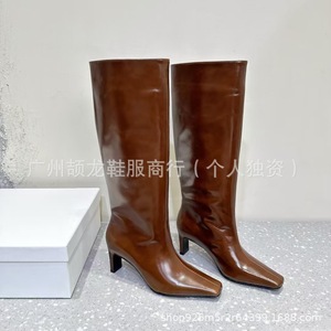 高端2025小众秋冬时髦真皮方头复古高跟显瘦高筒骑士靴时装长靴女